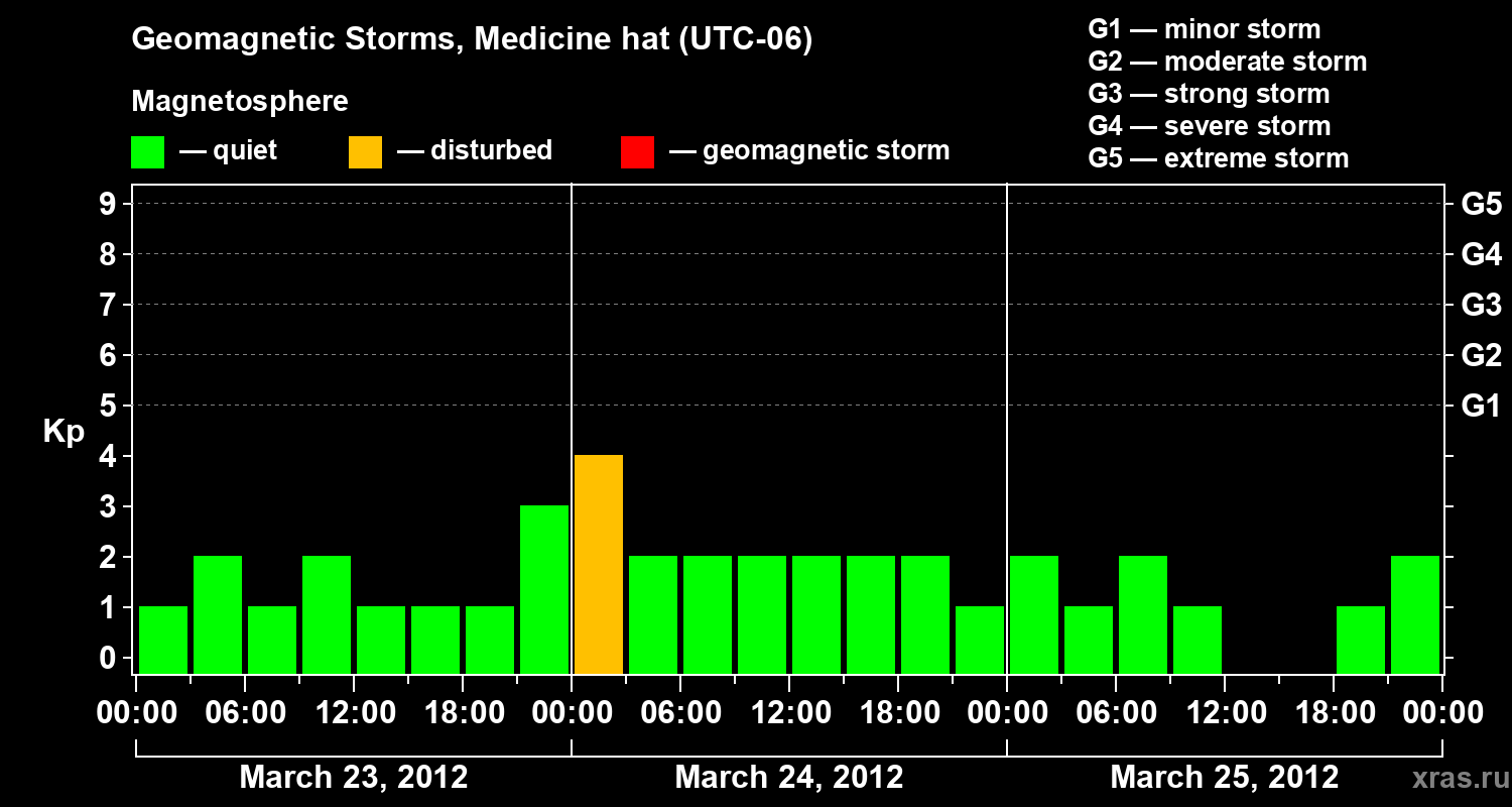 Geomagnetic storms in Medicine hat — Mar 25, 2012