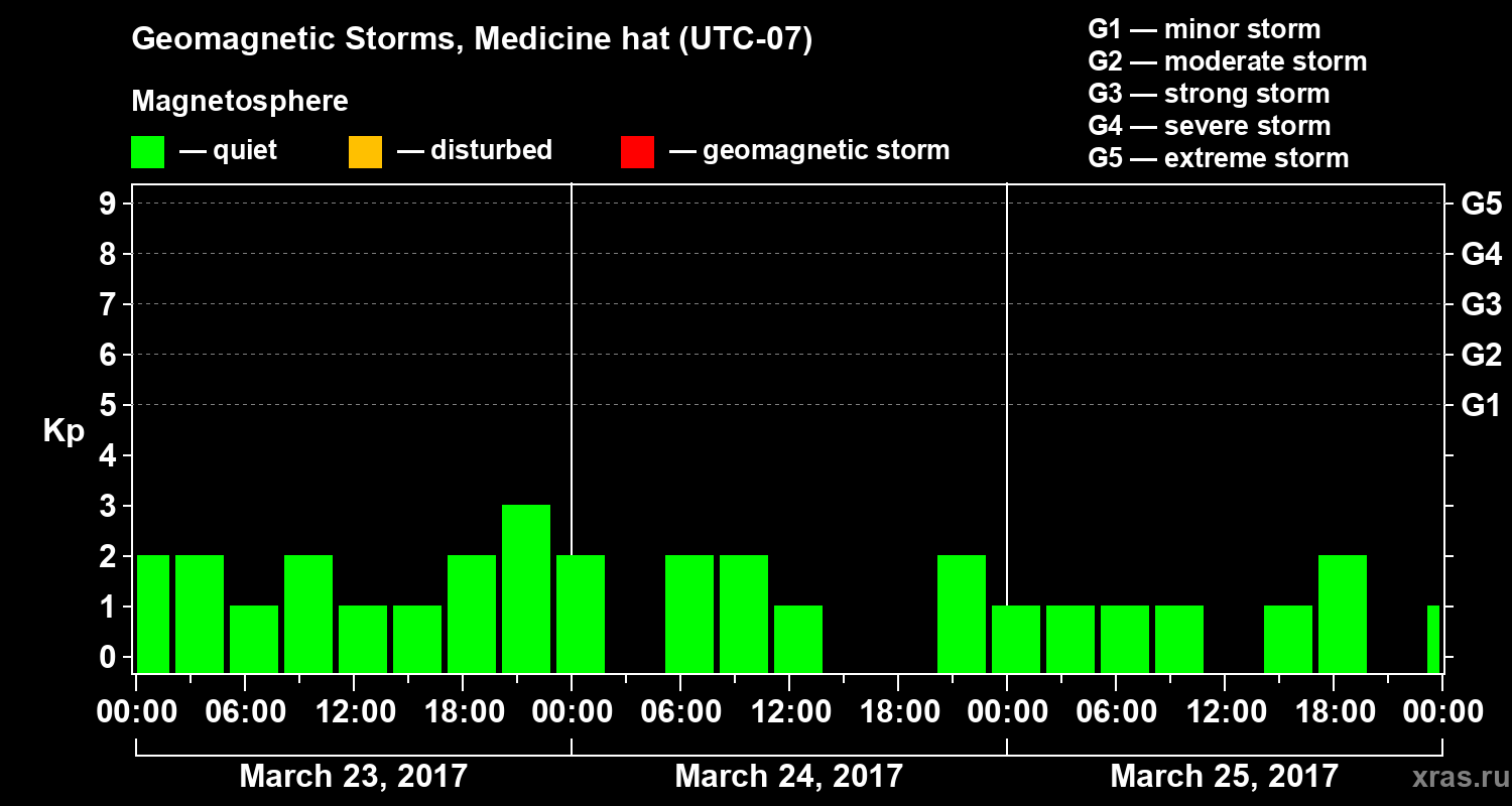 Geomagnetic storms in Medicine hat on Mar 25, 2017