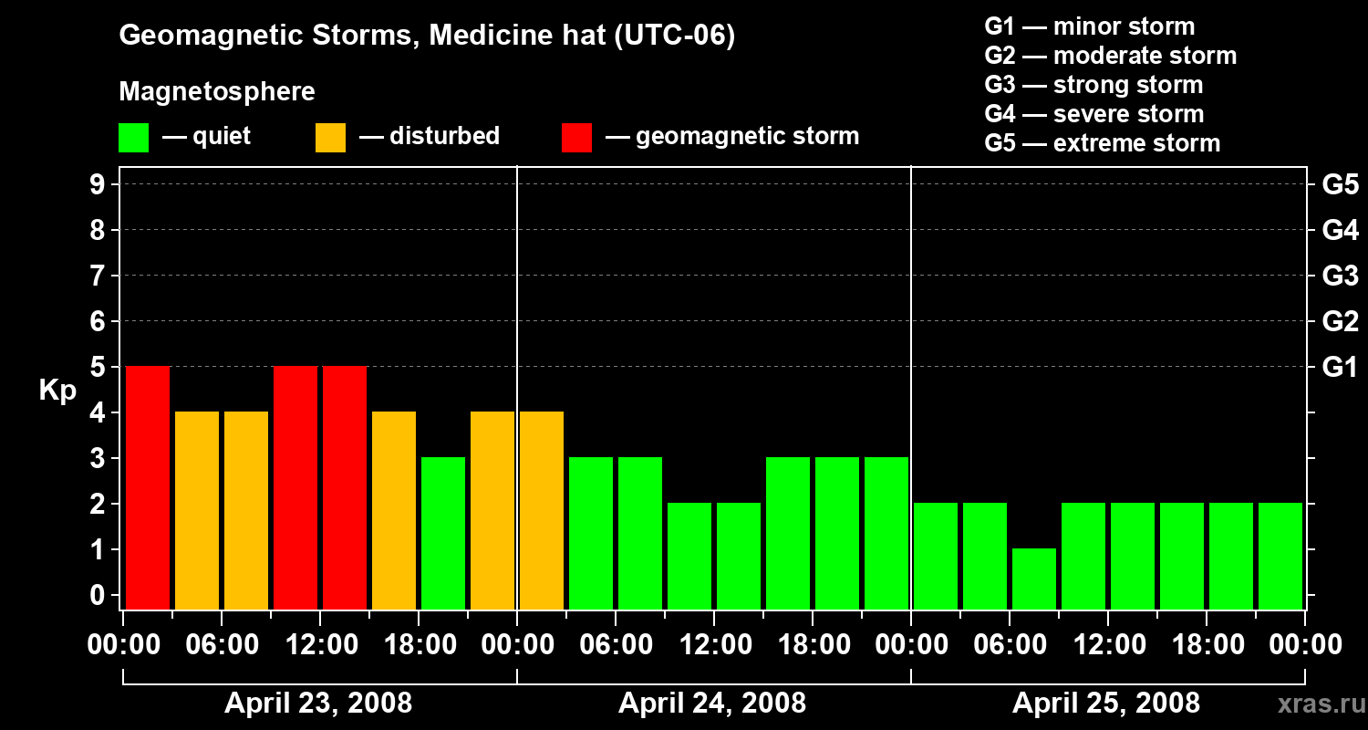 Geomagnetic storms in Medicine hat on Apr 25, 2008