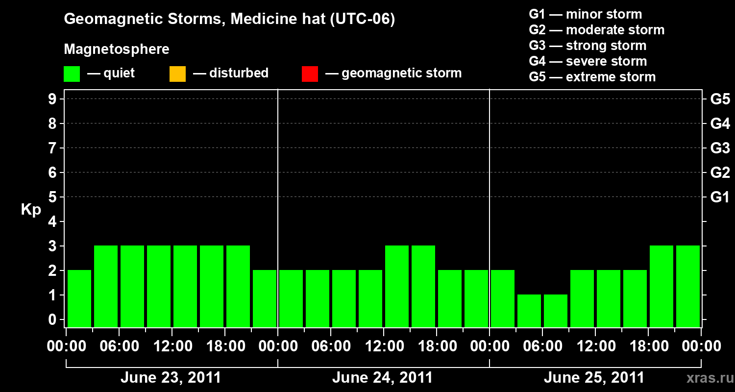 Geomagnetic storms in Medicine hat on Jun 25, 2011