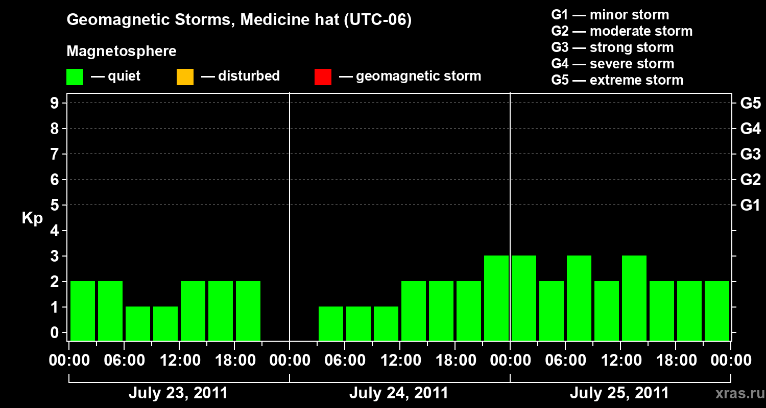Geomagnetic storms in Medicine hat — Jul 25, 2011