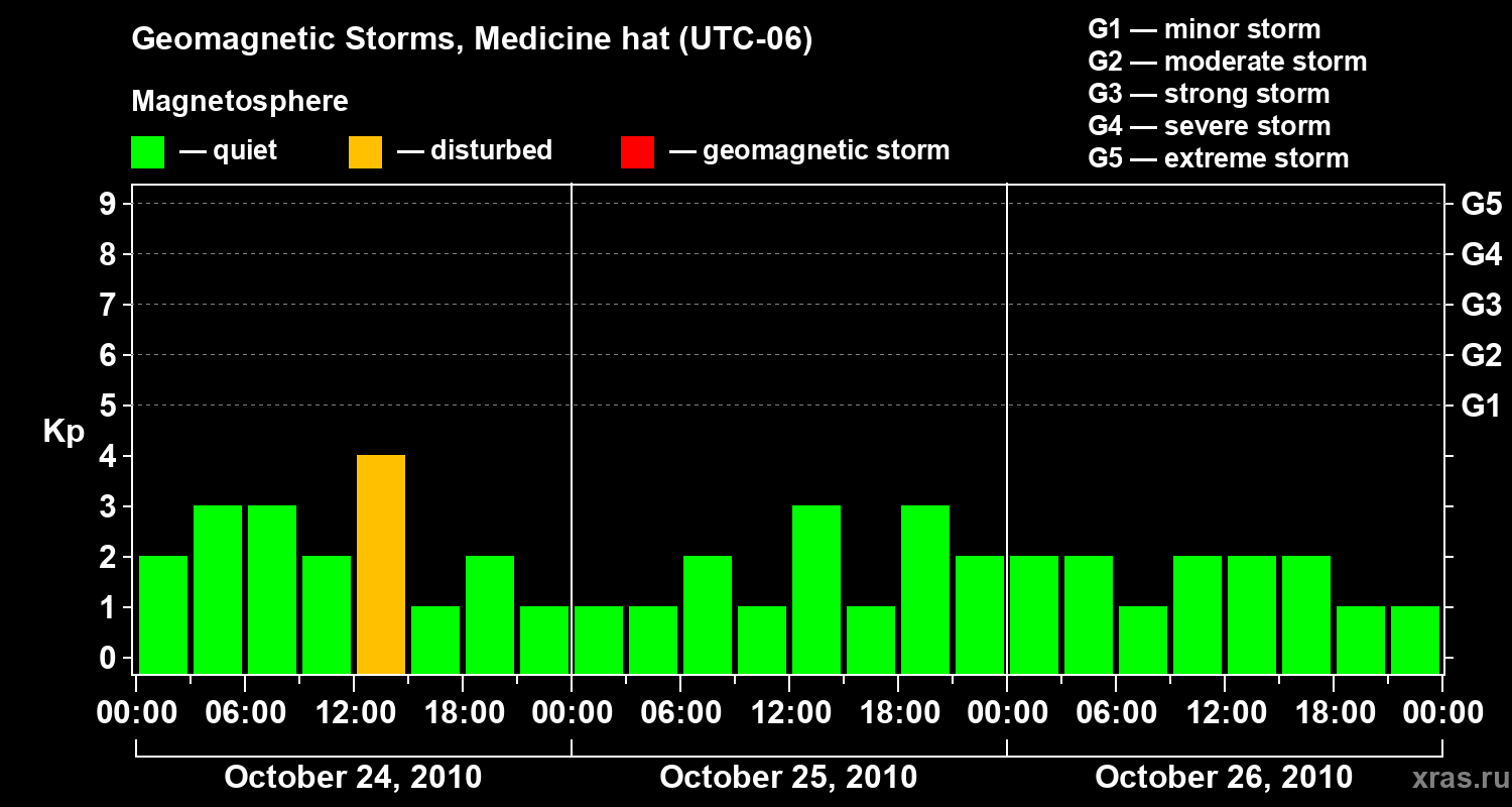Geomagnetic storms in Medicine hat on Oct 26, 2010