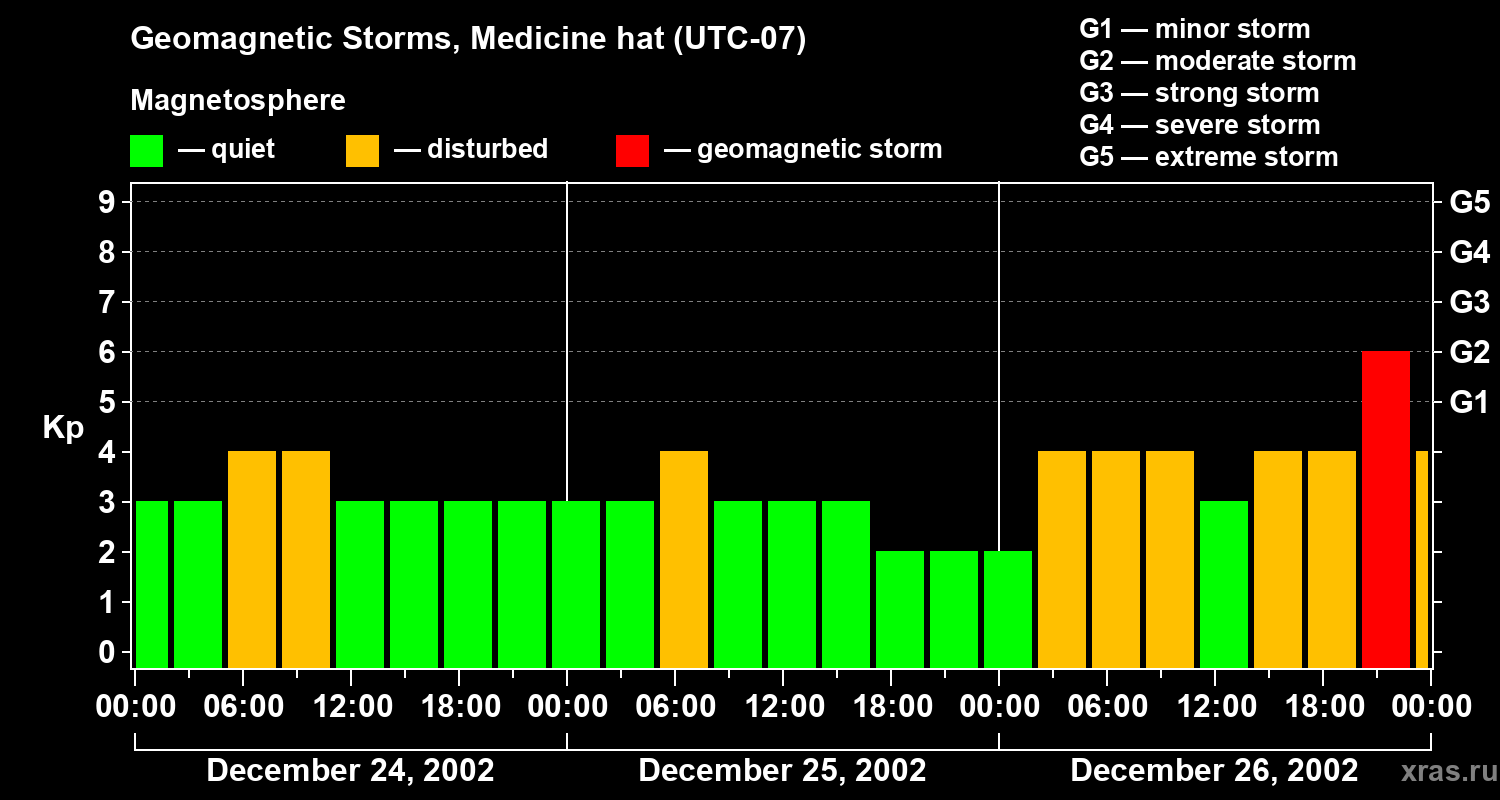 Geomagnetic storms in Medicine hat on Dec 26, 2002