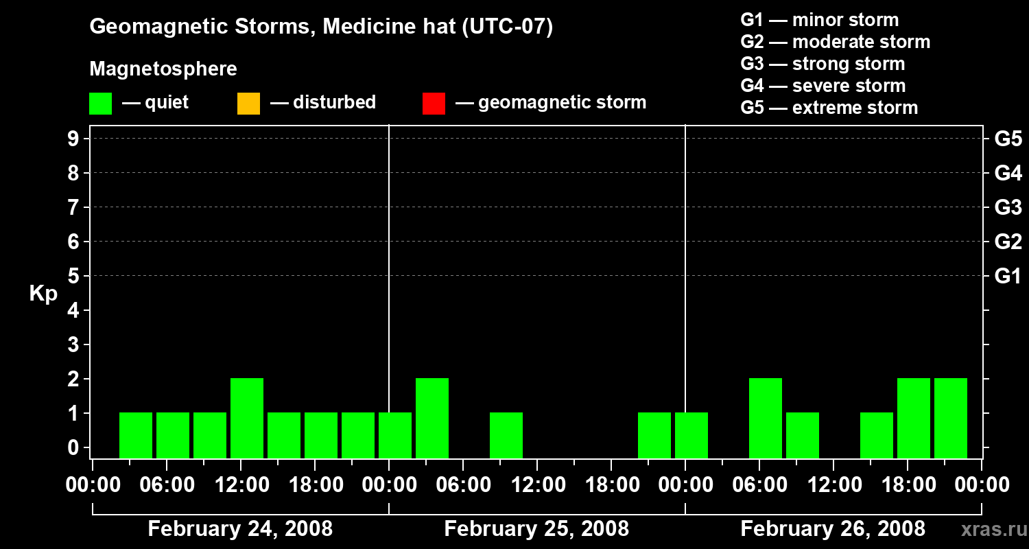 Geomagnetic storms in Medicine hat on Feb 26, 2008