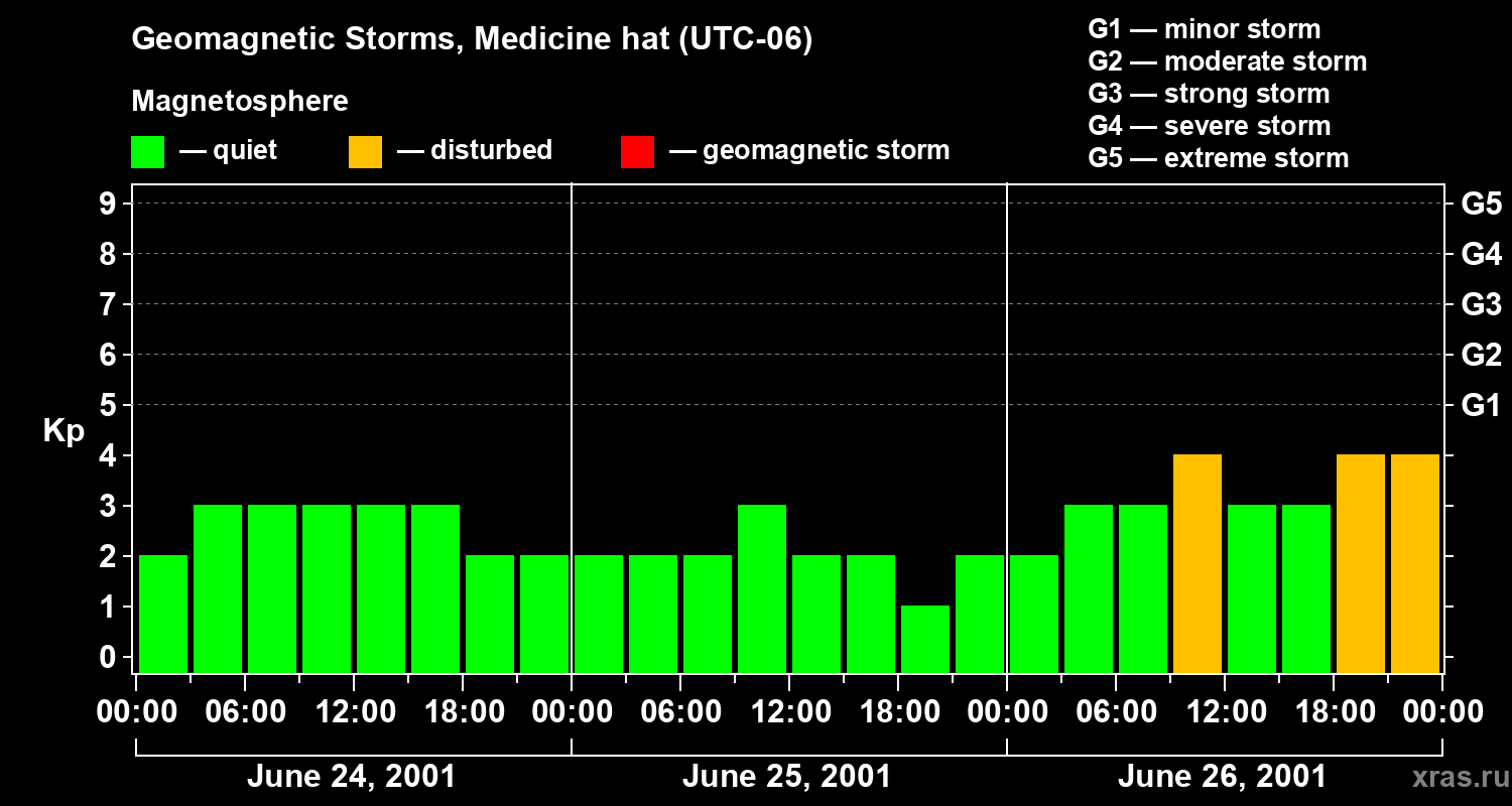 Geomagnetic storms in Medicine hat on Jun 26, 2001