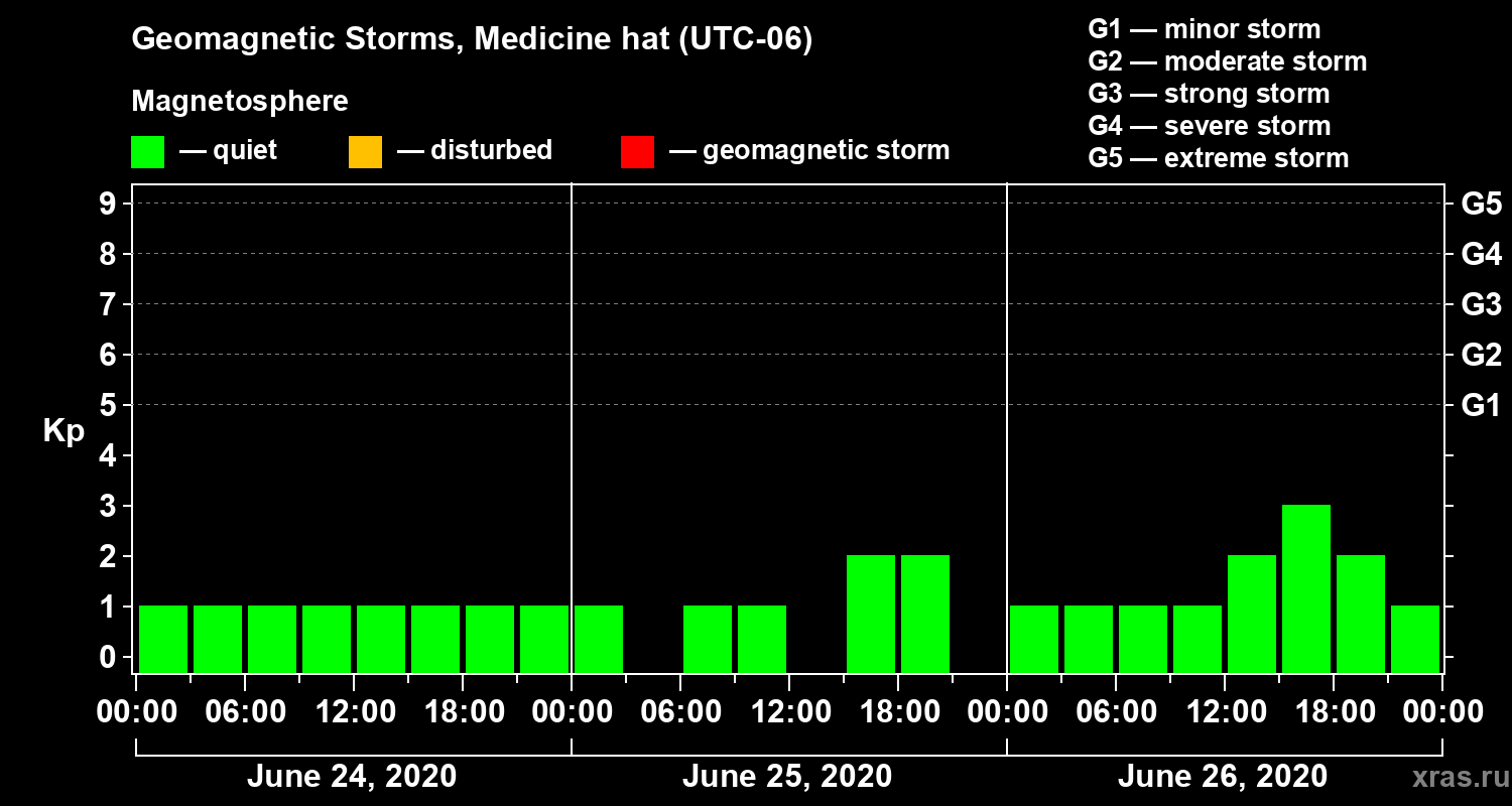 Geomagnetic storms in Medicine hat — Jun 26, 2020