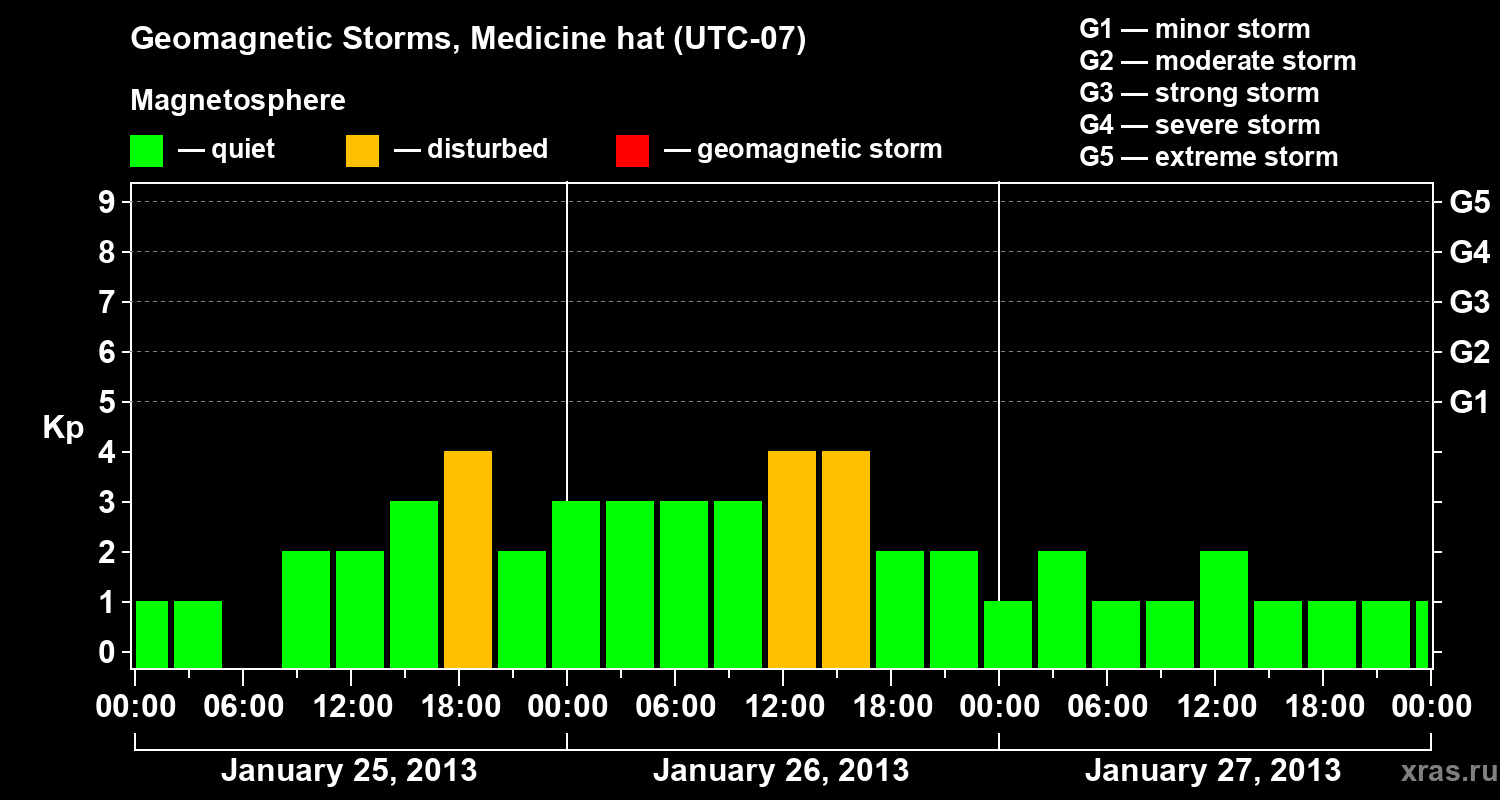 Geomagnetic storms in Medicine hat — Jan 27, 2013