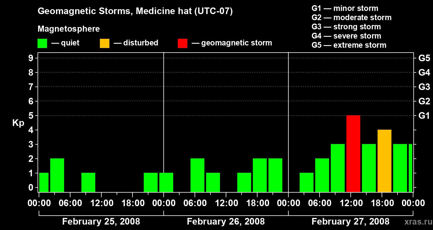 Geomagnetic storms in Medicine hat on Feb 27, 2008