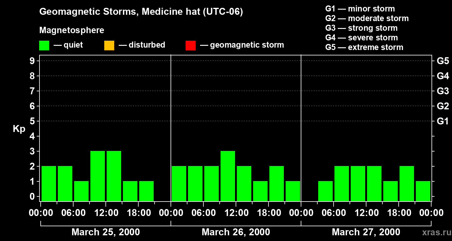 Geomagnetic storms in Medicine hat on Mar 27, 2000