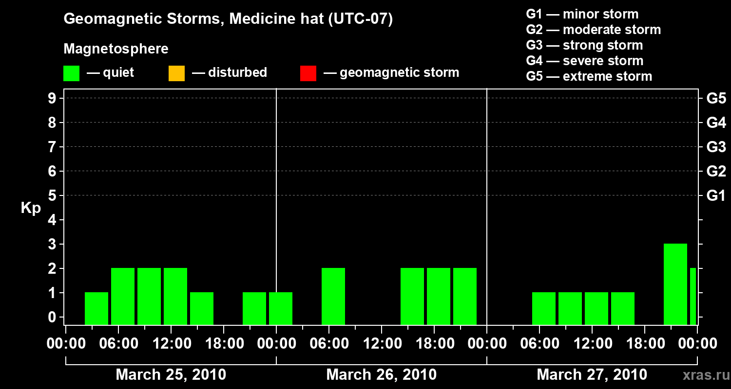 Geomagnetic storms in Medicine hat — Mar 27, 2010
