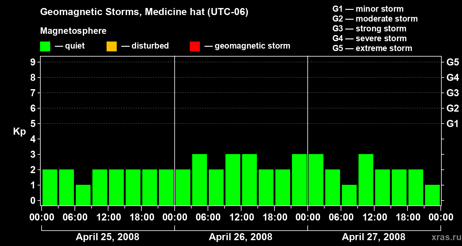 Geomagnetic storms in Medicine hat on Apr 27, 2008