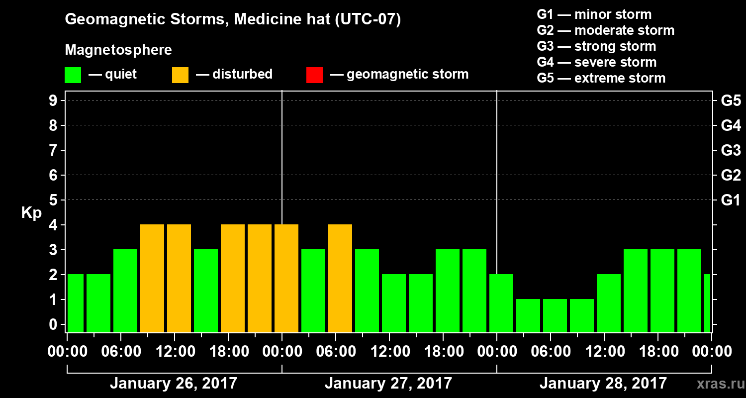 Geomagnetic storms in Medicine hat on Jan 28, 2017
