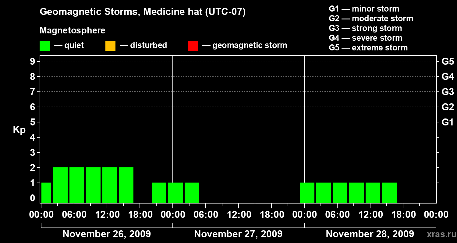 Geomagnetic storms in Medicine hat on Nov 28, 2009