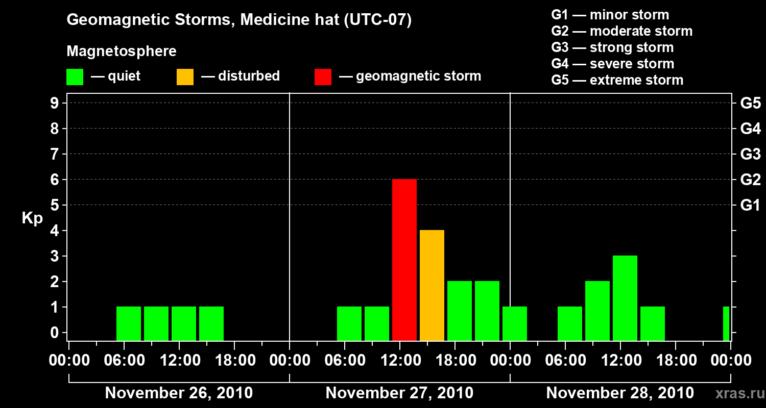 Geomagnetic storms in Medicine hat on Nov 28, 2010
