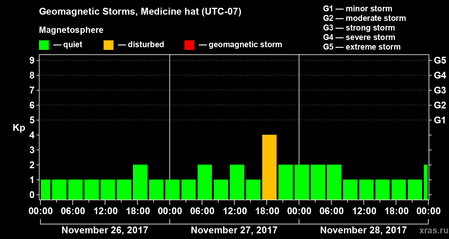 Geomagnetic storms in Medicine hat — Nov 28, 2017
