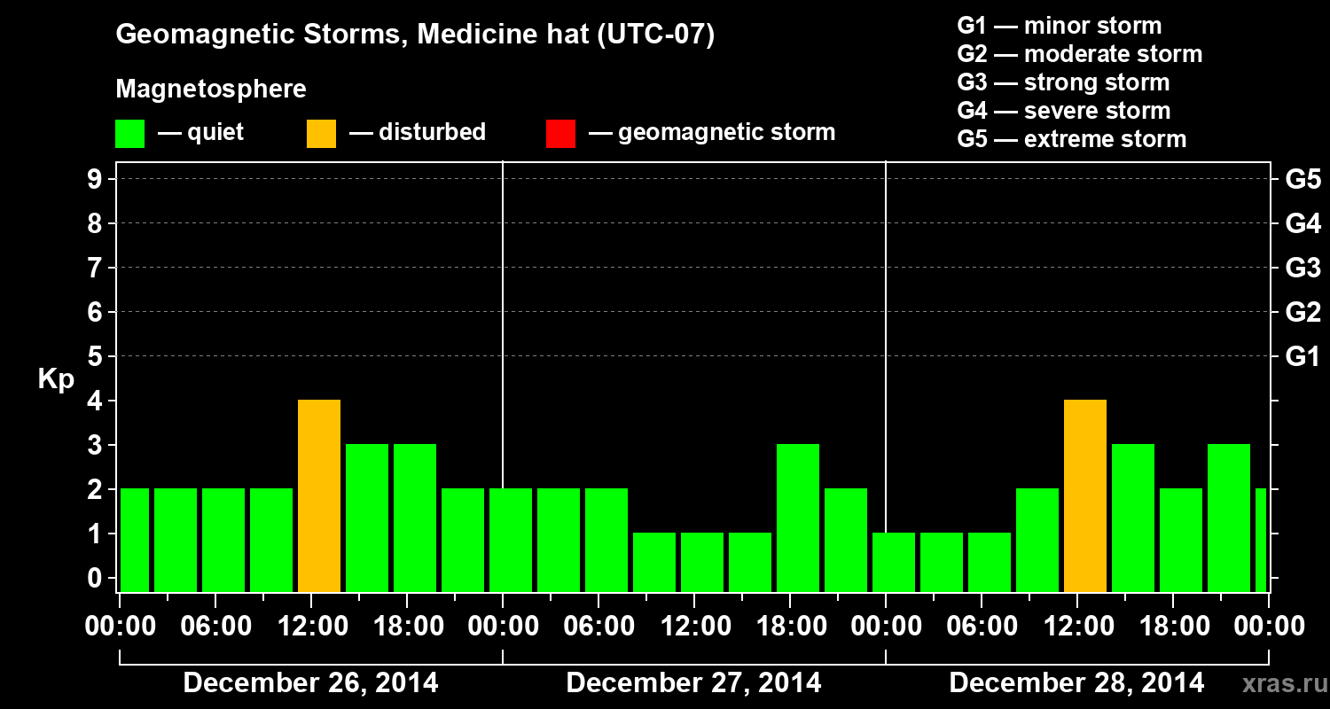Geomagnetic storms in Medicine hat on Dec 28, 2014