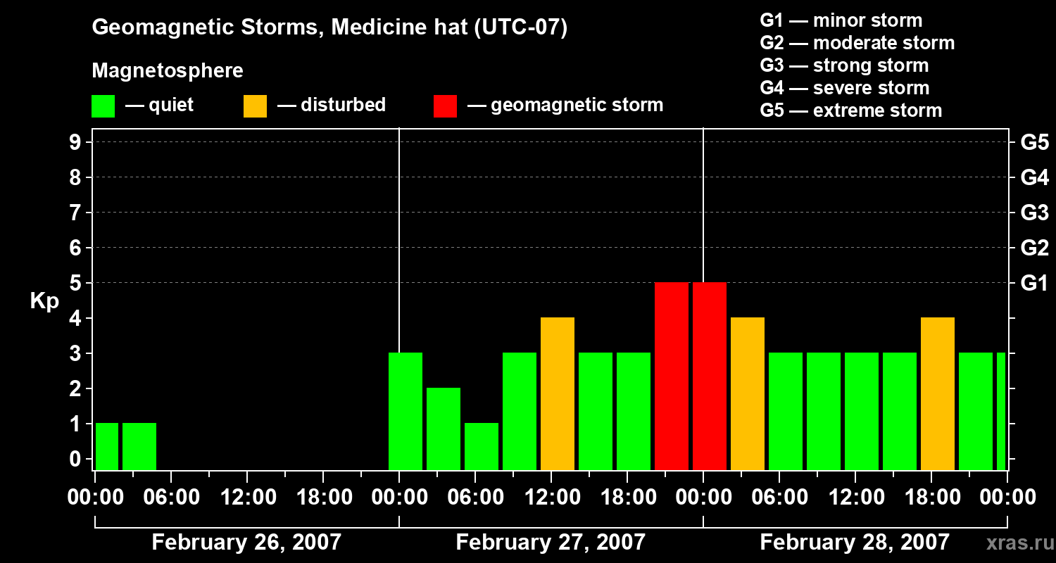Geomagnetic storms in Medicine hat on Feb 28, 2007