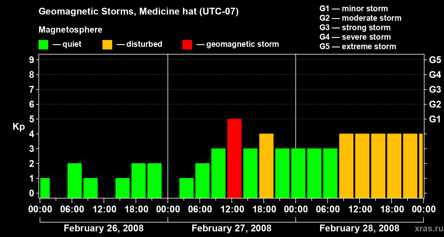 Geomagnetic storms in Medicine hat on Feb 28, 2008