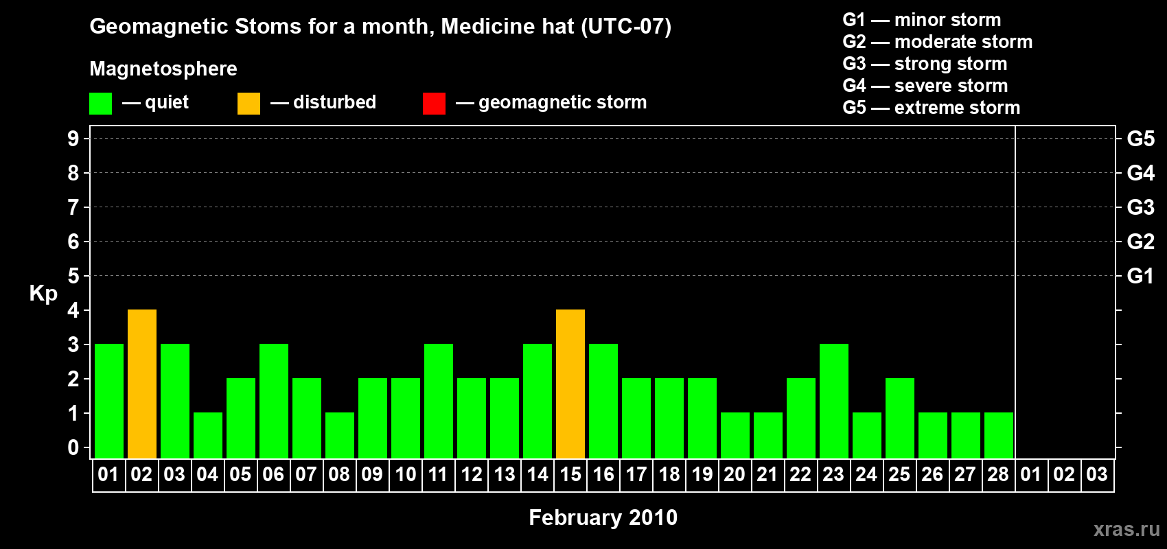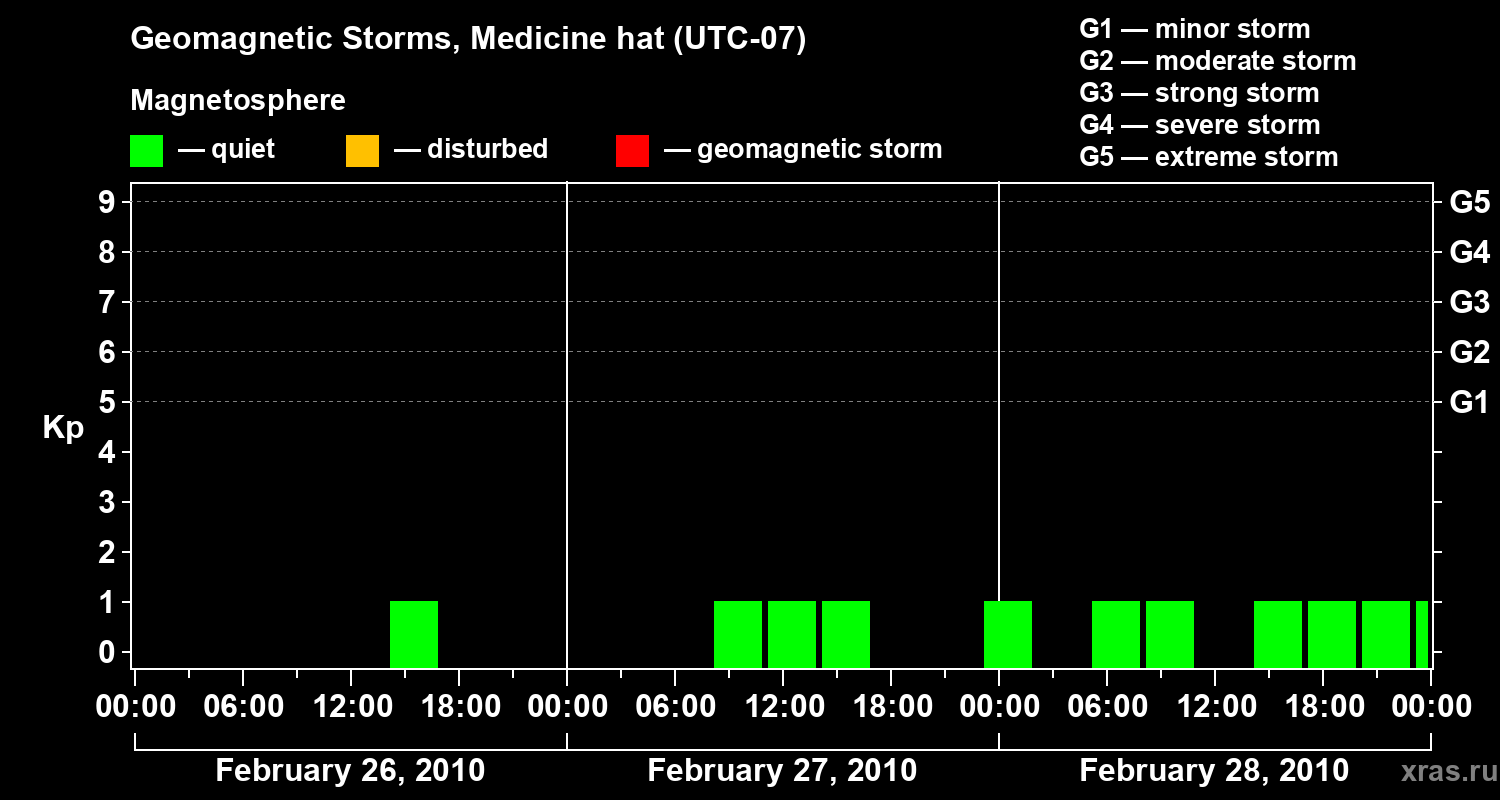 Geomagnetic storms in Medicine hat — Feb 28, 2010
