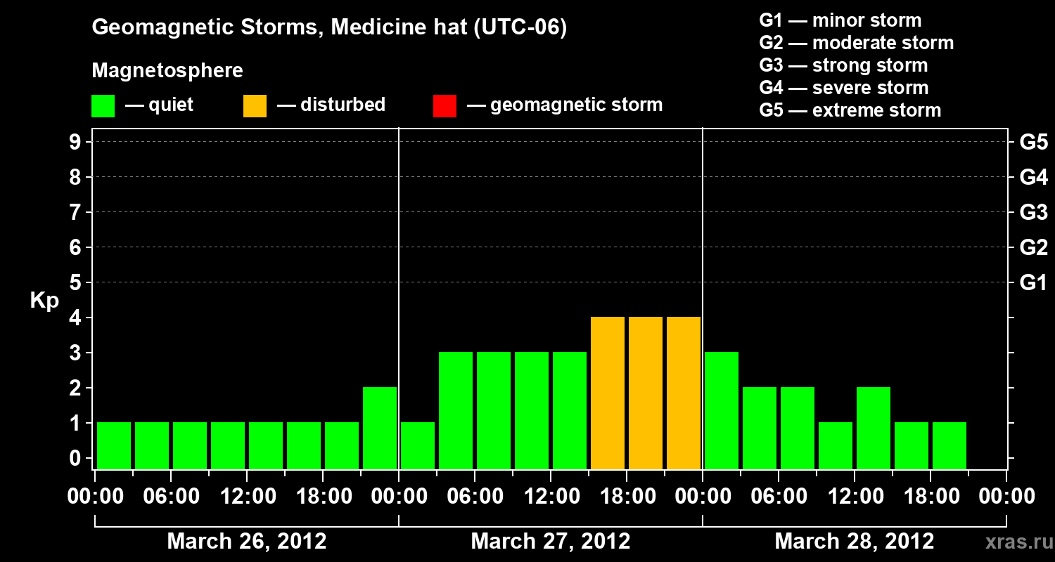 Geomagnetic storms in Medicine hat — Mar 28, 2012