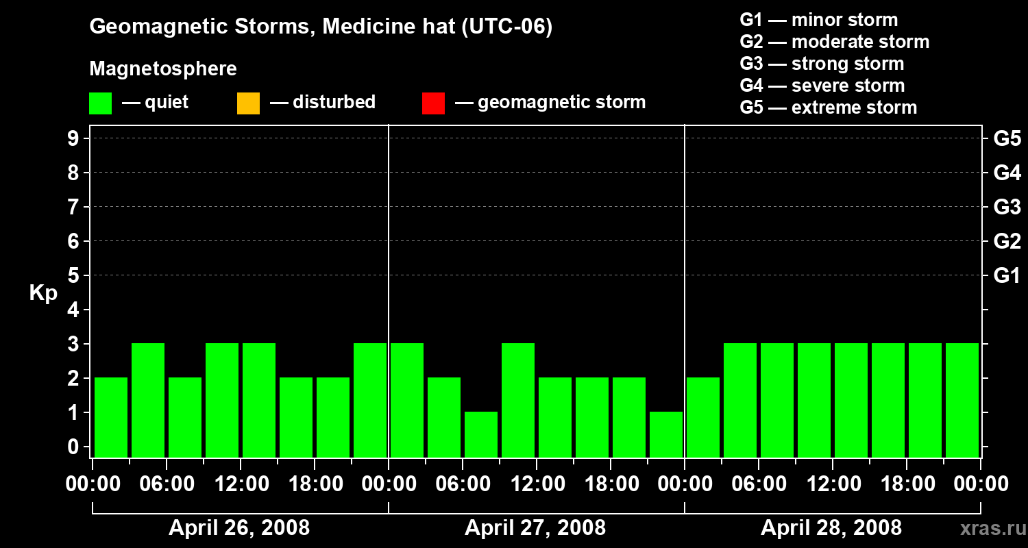 Geomagnetic storms in Medicine hat on Apr 28, 2008
