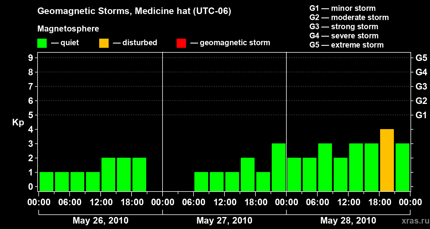 Geomagnetic storms in Medicine hat on May 28, 2010
