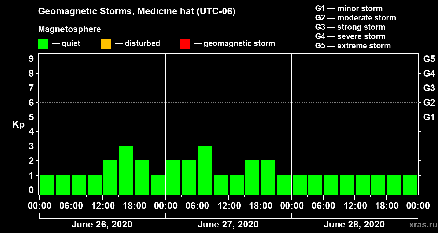 Geomagnetic storms in Medicine hat — Jun 28, 2020