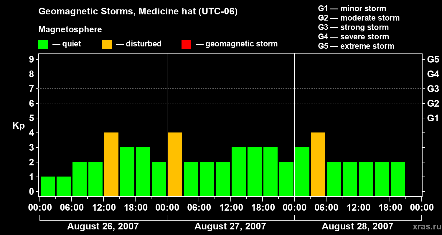 Geomagnetic storms in Medicine hat — Aug 28, 2007