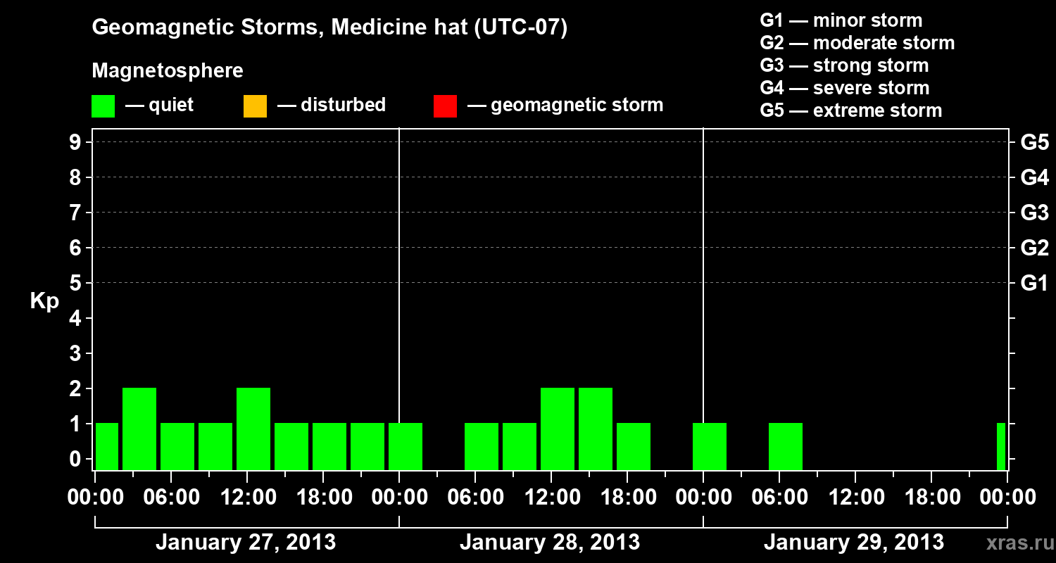 Geomagnetic storms in Medicine hat — Jan 29, 2013