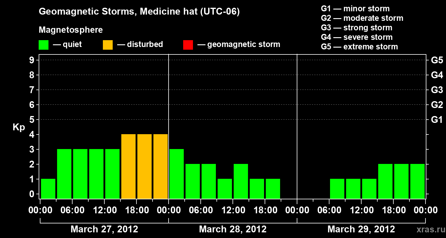 Geomagnetic storms in Medicine hat — Mar 29, 2012