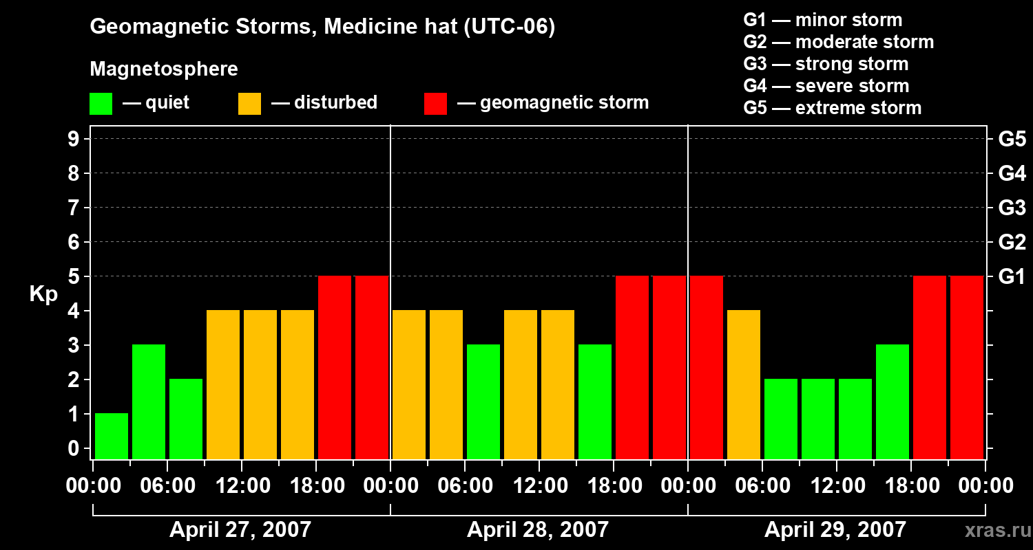 Geomagnetic storms in Medicine hat on Apr 29, 2007