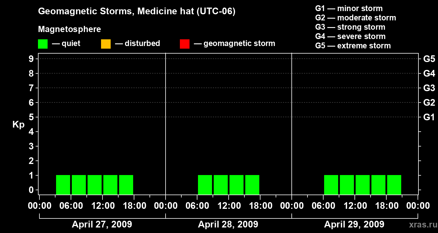 Geomagnetic storms in Medicine hat on Apr 29, 2009