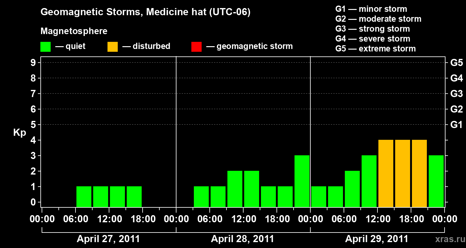 Geomagnetic storms in Medicine hat — Apr 29, 2011