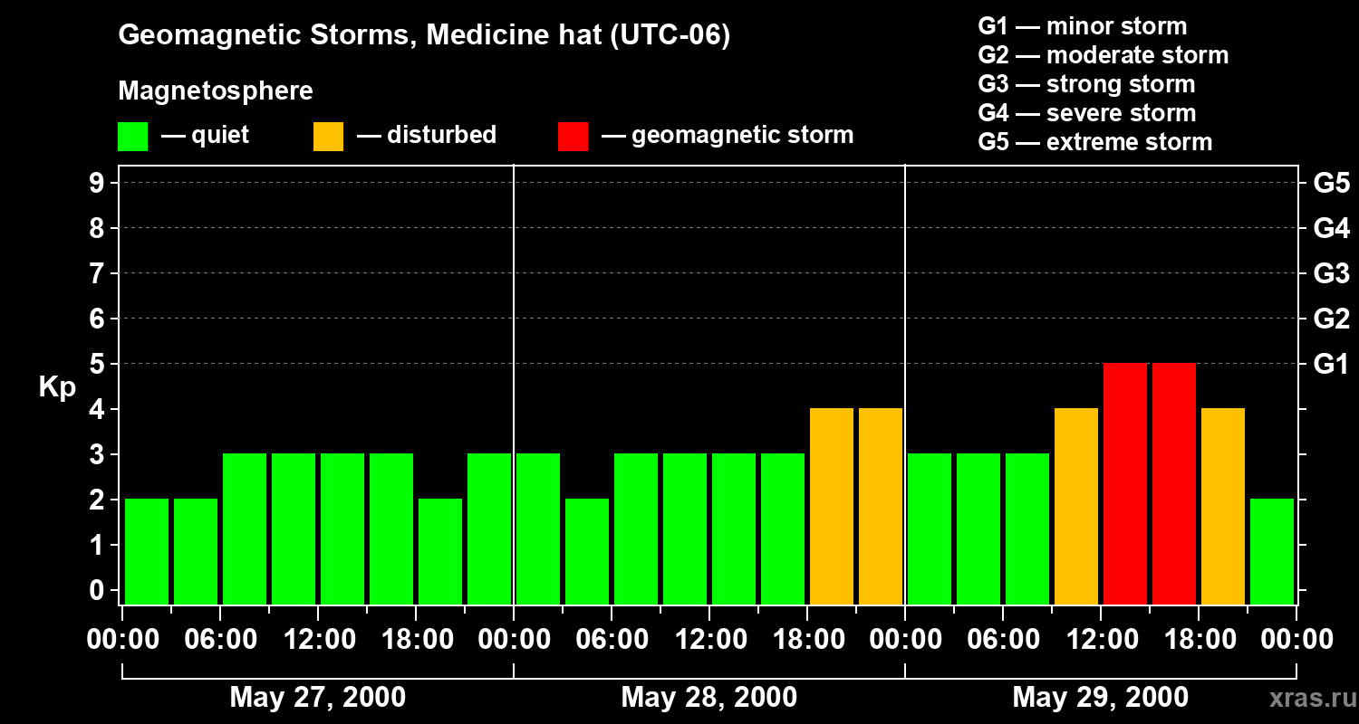 Geomagnetic storms in Medicine hat on May 29, 2000