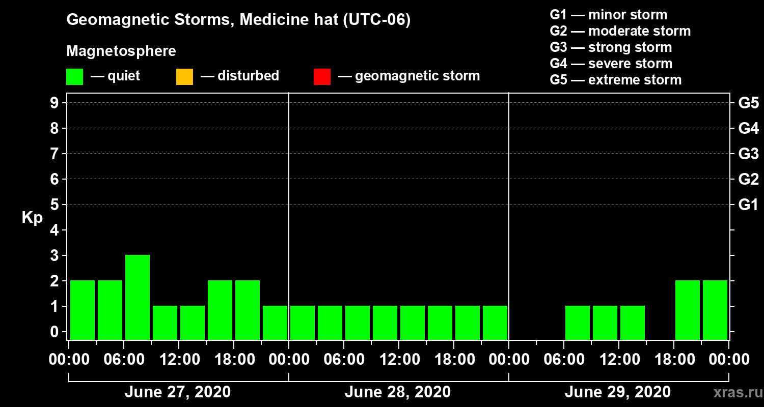 Geomagnetic storms in Medicine hat — Jun 29, 2020