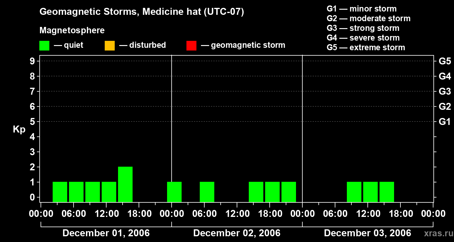 Geomagnetic storms in Medicine hat on Dec 03, 2006