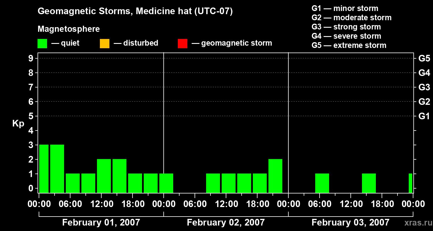 Geomagnetic storms in Medicine hat on Feb 03, 2007