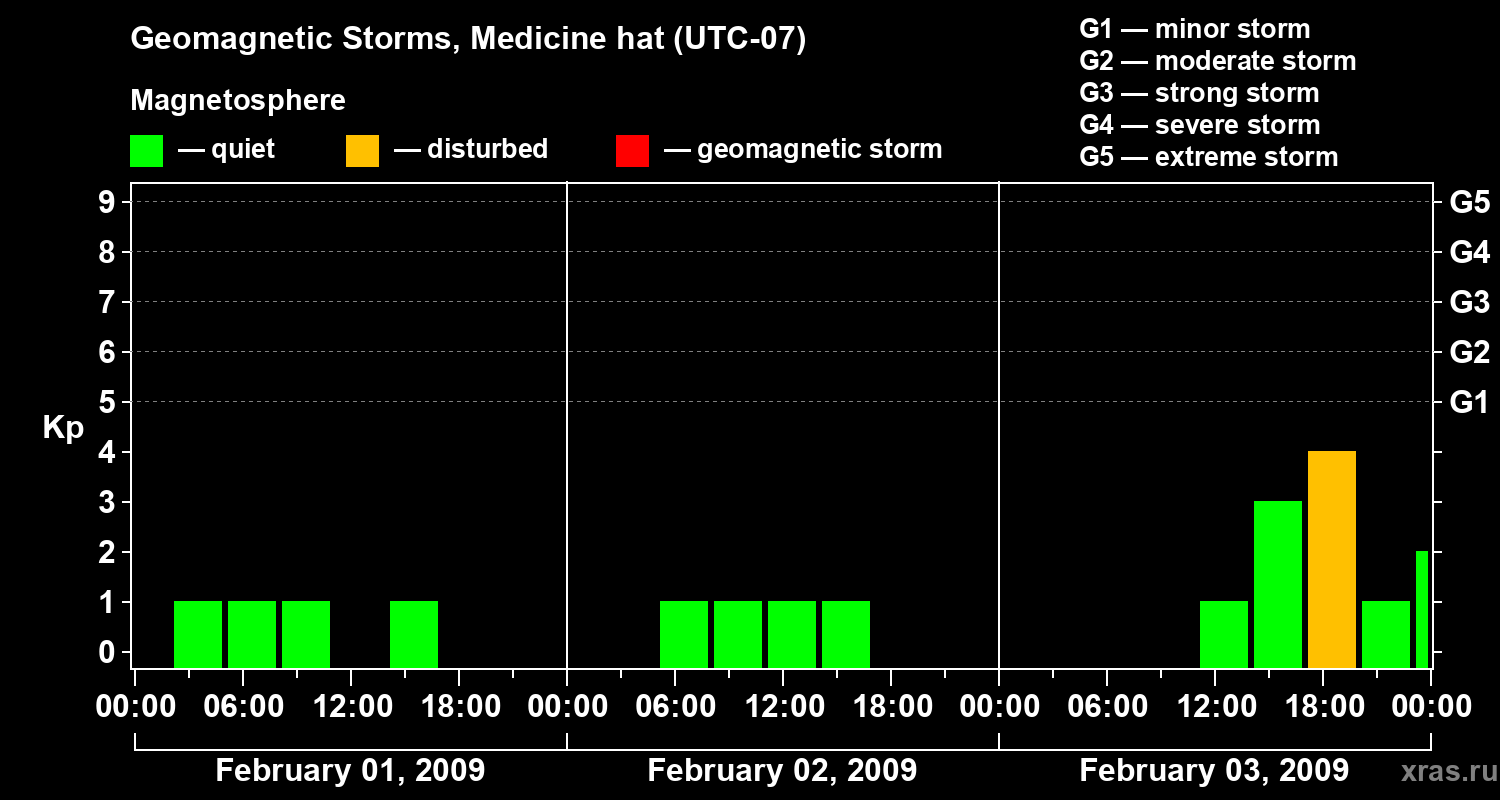 Geomagnetic storms in Medicine hat on Feb 03, 2009