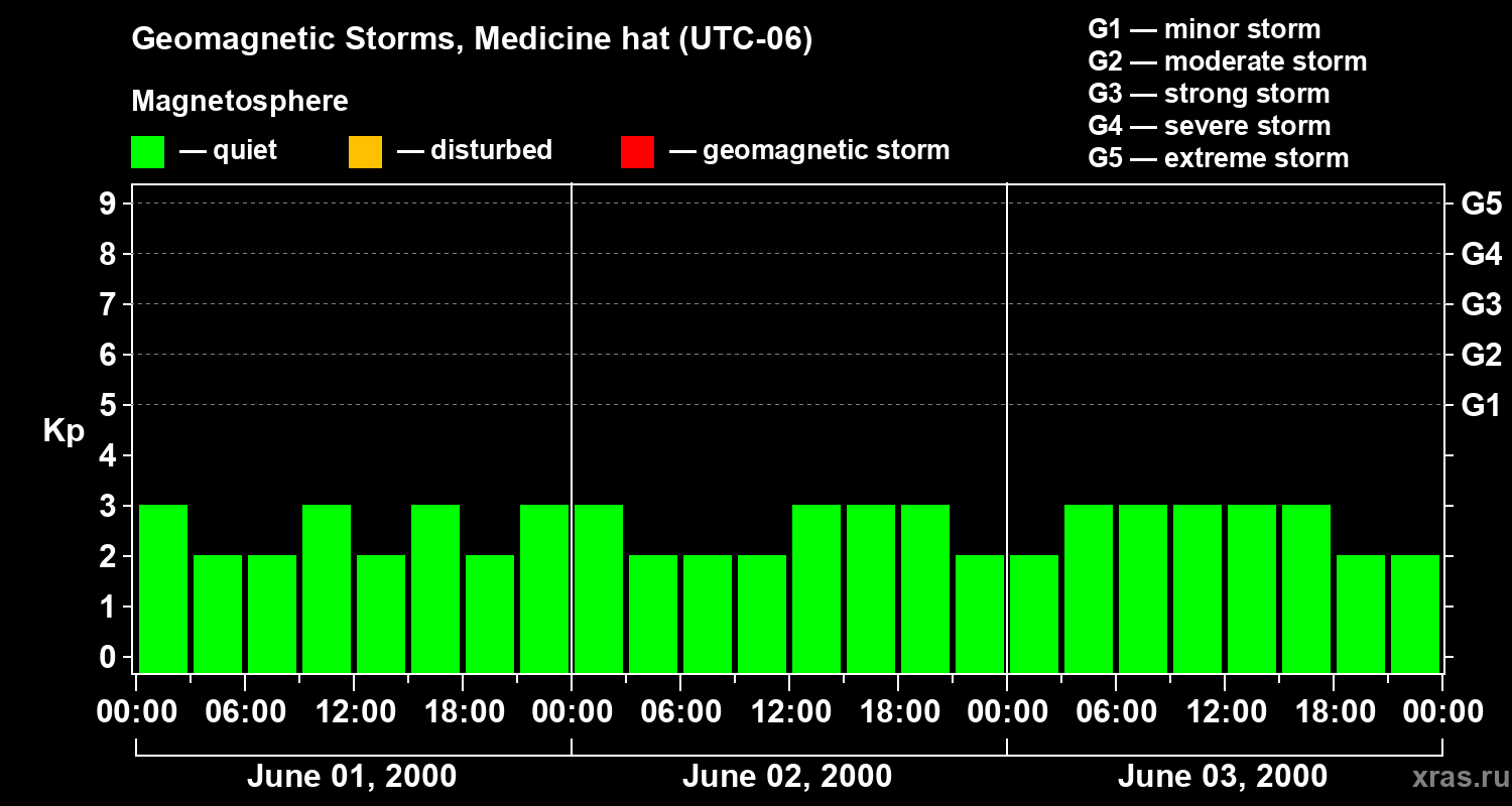 Geomagnetic storms in Medicine hat on Jun 03, 2000