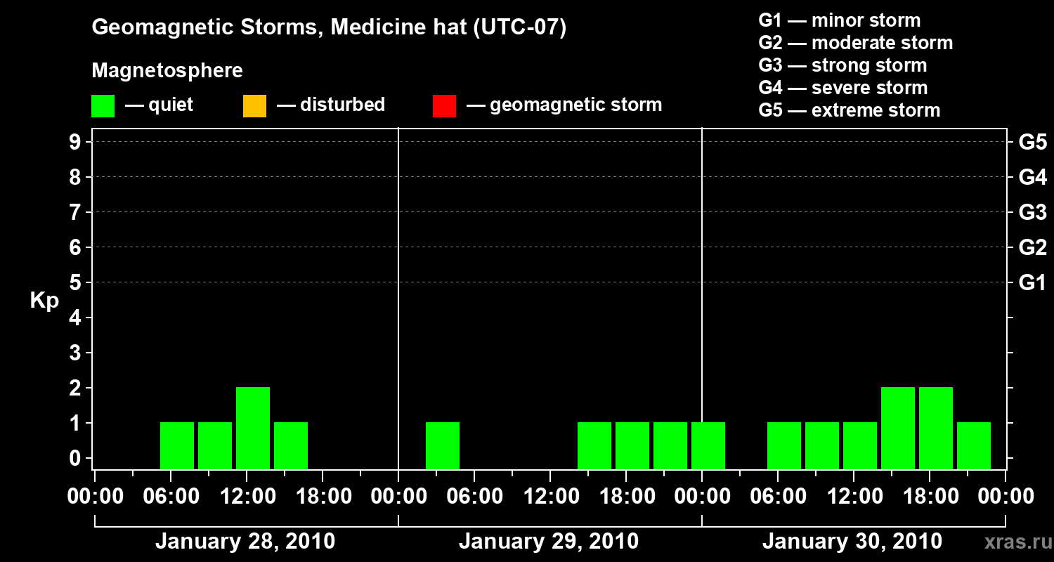 Geomagnetic storms in Medicine hat on Jan 30, 2010