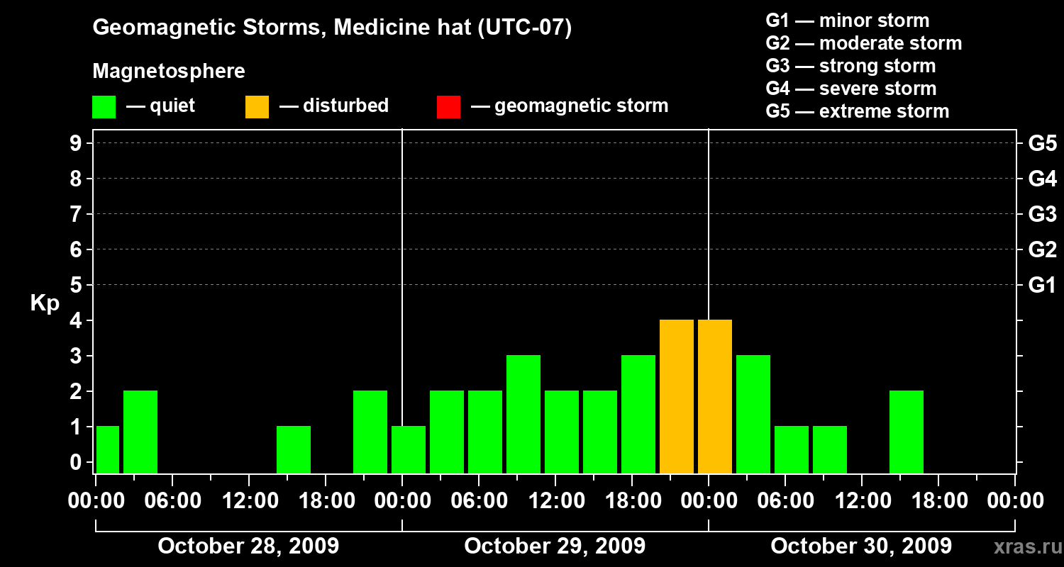 Geomagnetic storms in Medicine hat on Oct 30, 2009