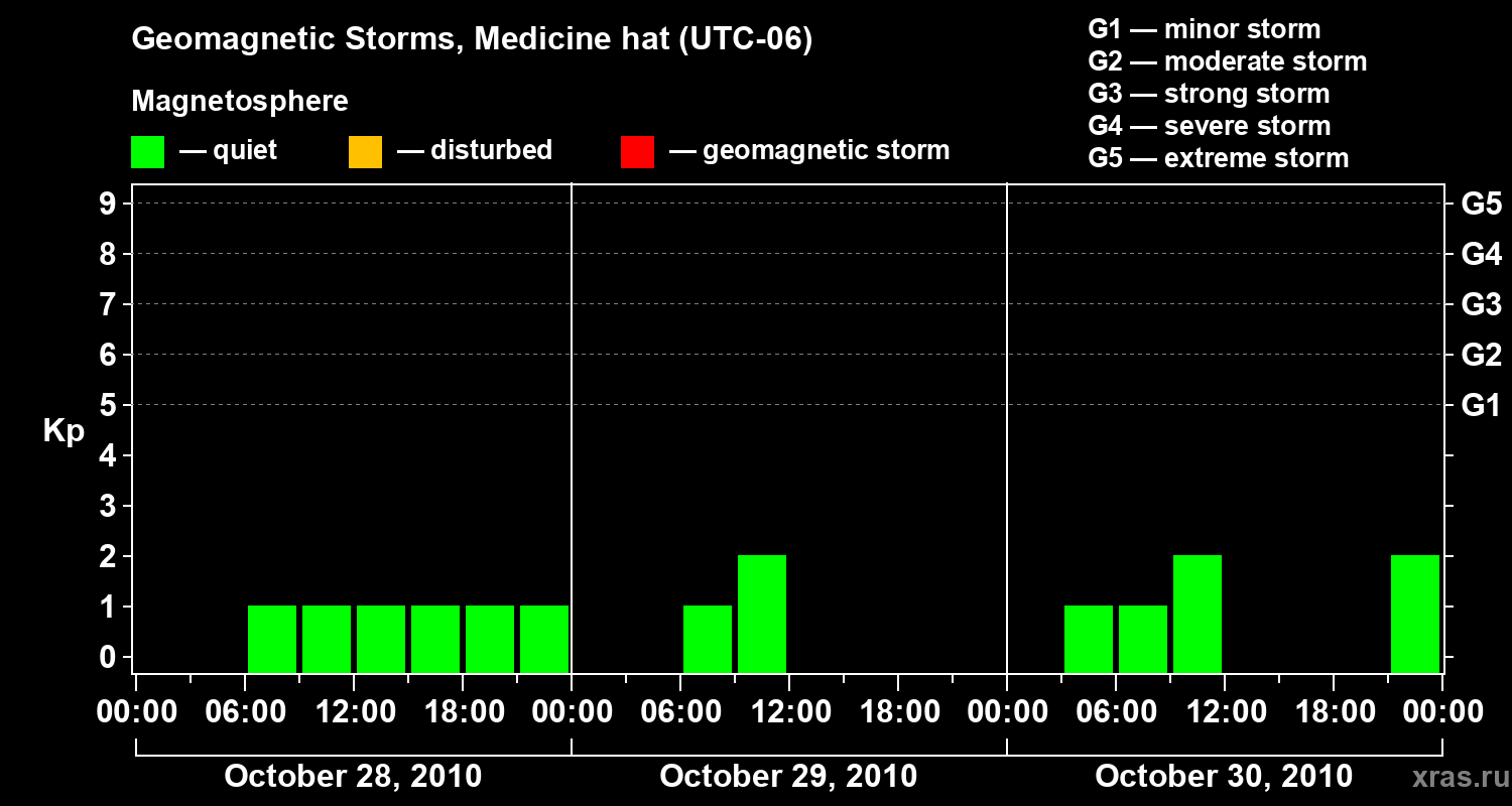 Geomagnetic storms in Medicine hat on Oct 30, 2010