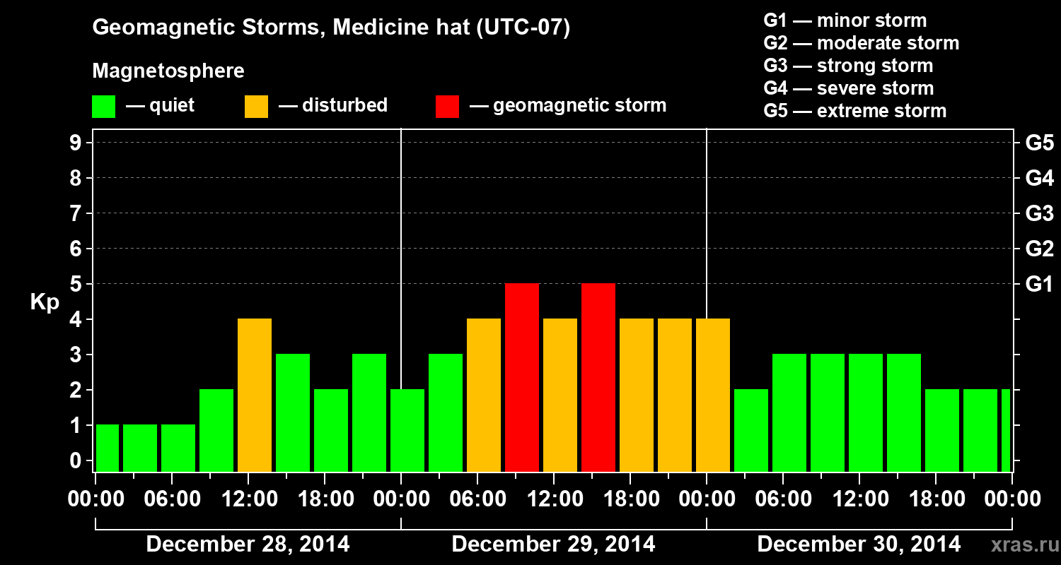 Geomagnetic storms in Medicine hat — Dec 30, 2014