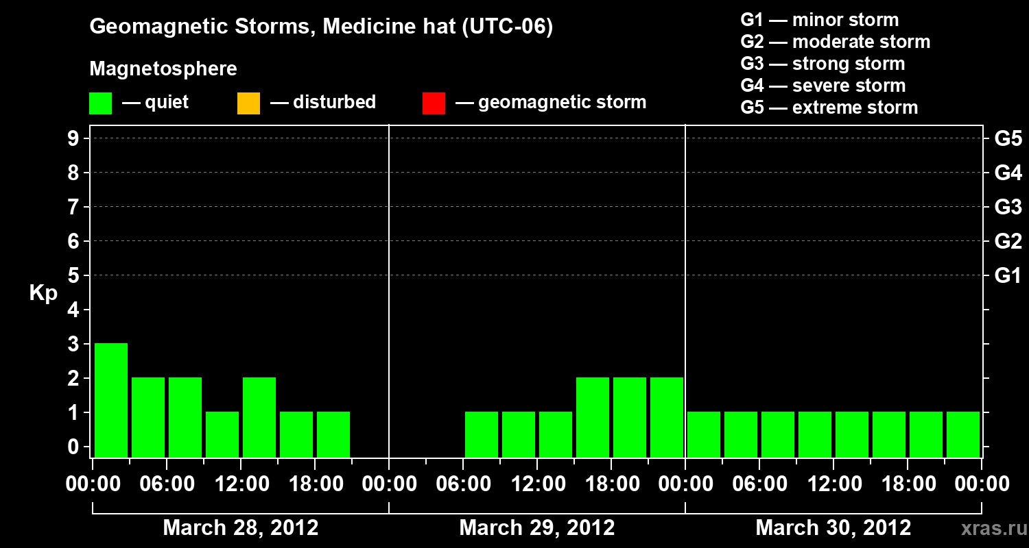 Geomagnetic storms in Medicine hat — Mar 30, 2012