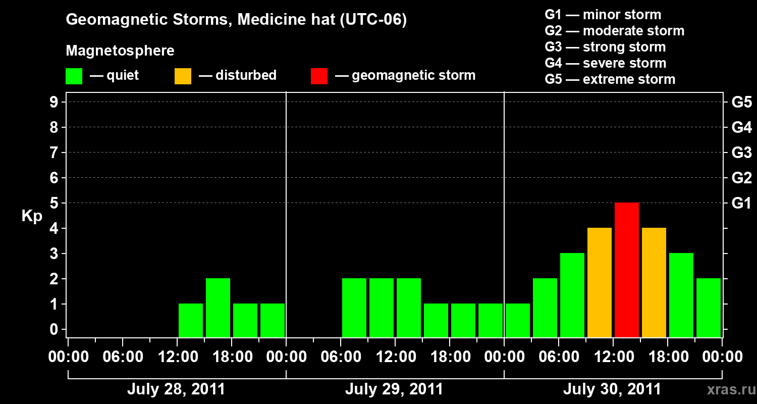 Geomagnetic storms in Medicine hat — Jul 30, 2011