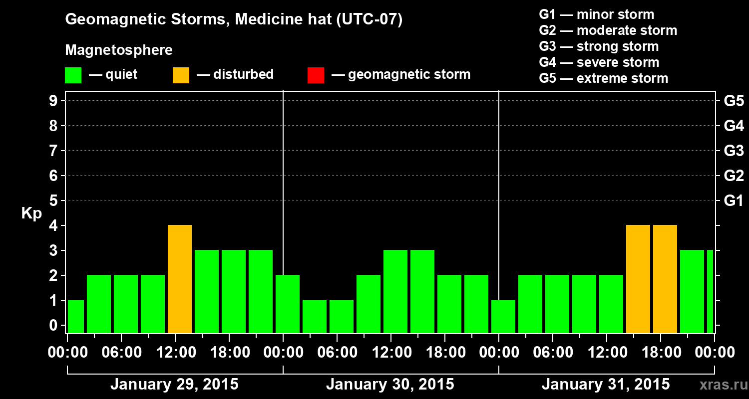 Geomagnetic storms in Medicine hat in January 2015