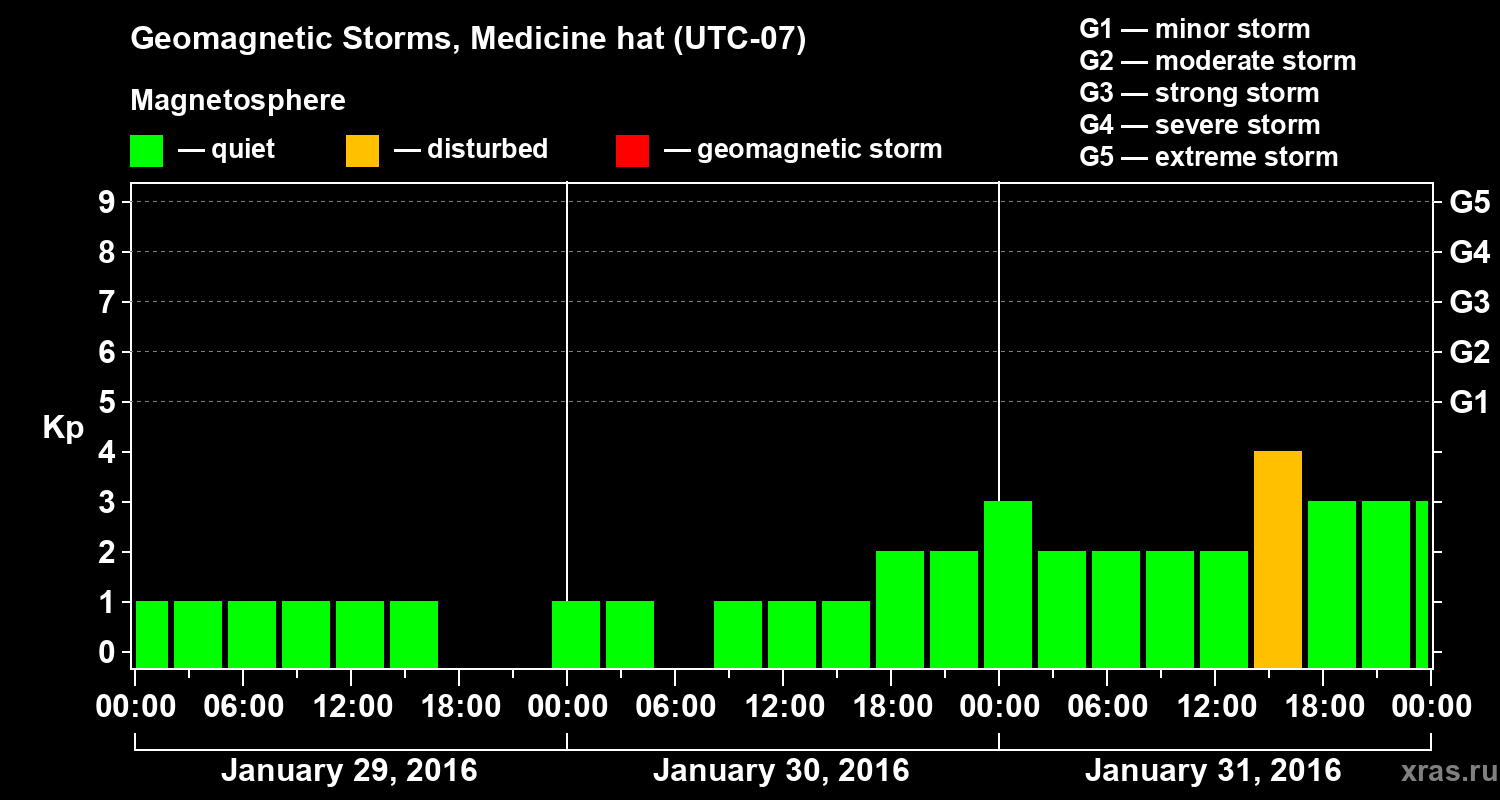 Geomagnetic storms in Medicine hat — Jan 31, 2016