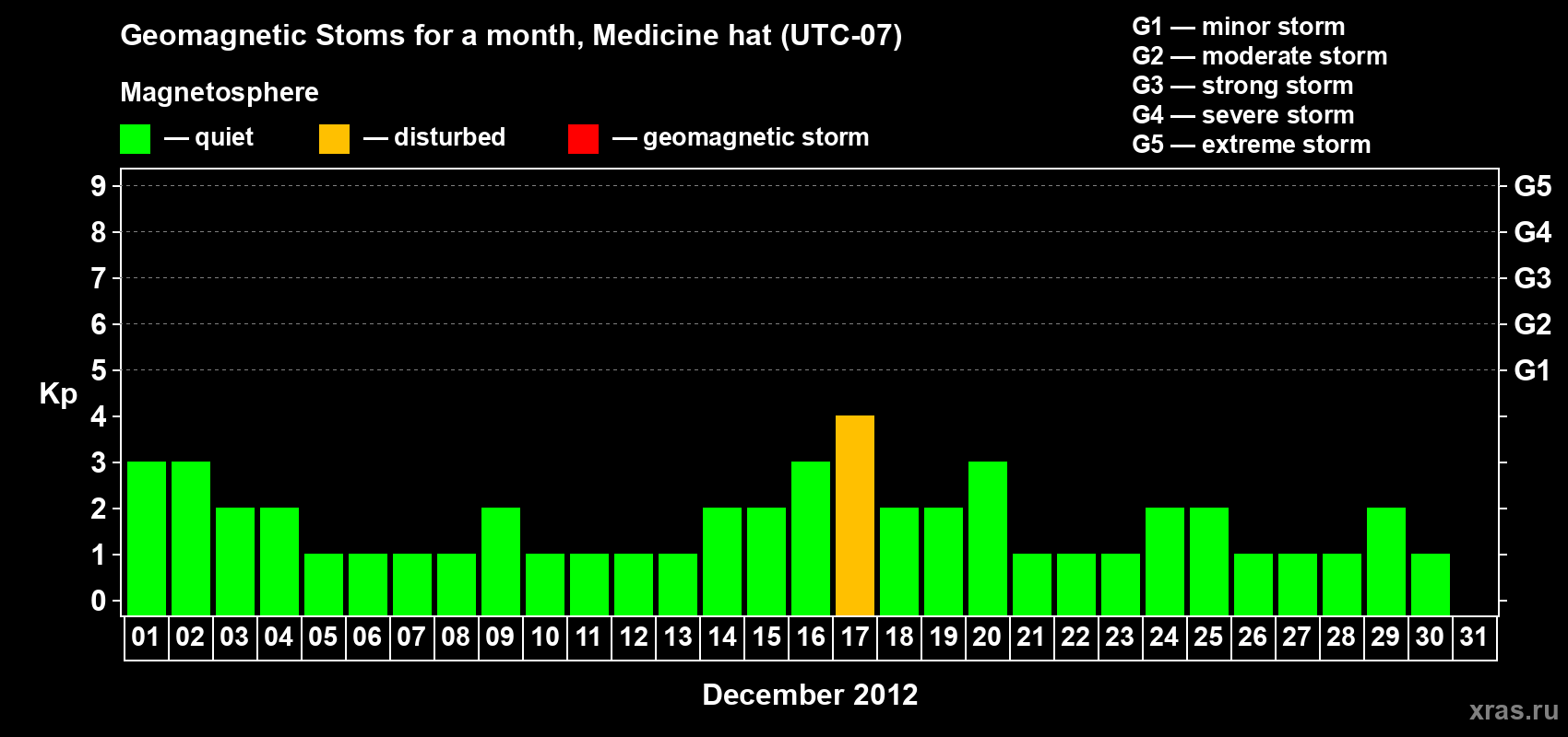 Geomagnetic storms in Medicine hat in December 2012