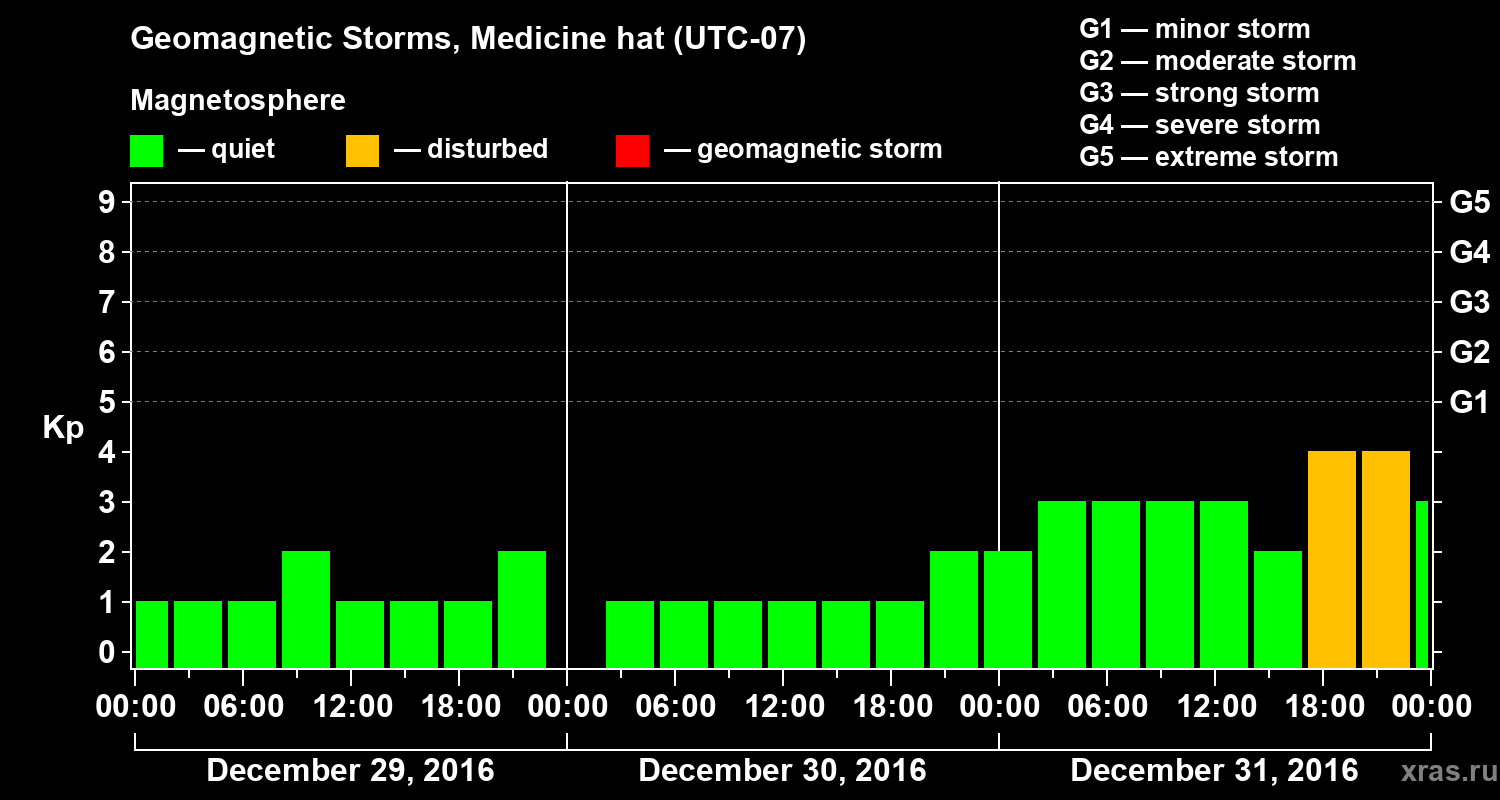 Geomagnetic storms in Medicine hat on Dec 31, 2016