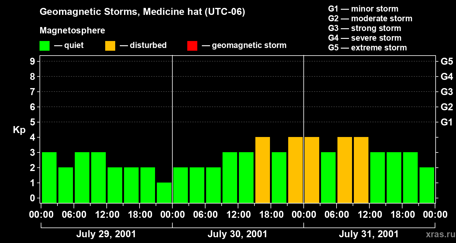 Geomagnetic storms in Medicine hat on Jul 31, 2001